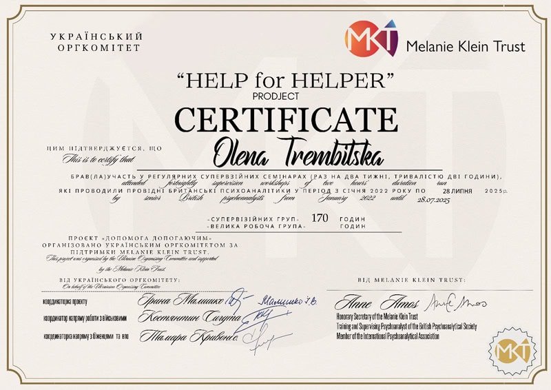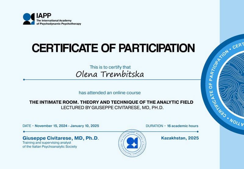 Mein Name ist Lena Trembitska Ich bin psychoanalytisch orientierter Life Coach und Gruppenanalytikerin.